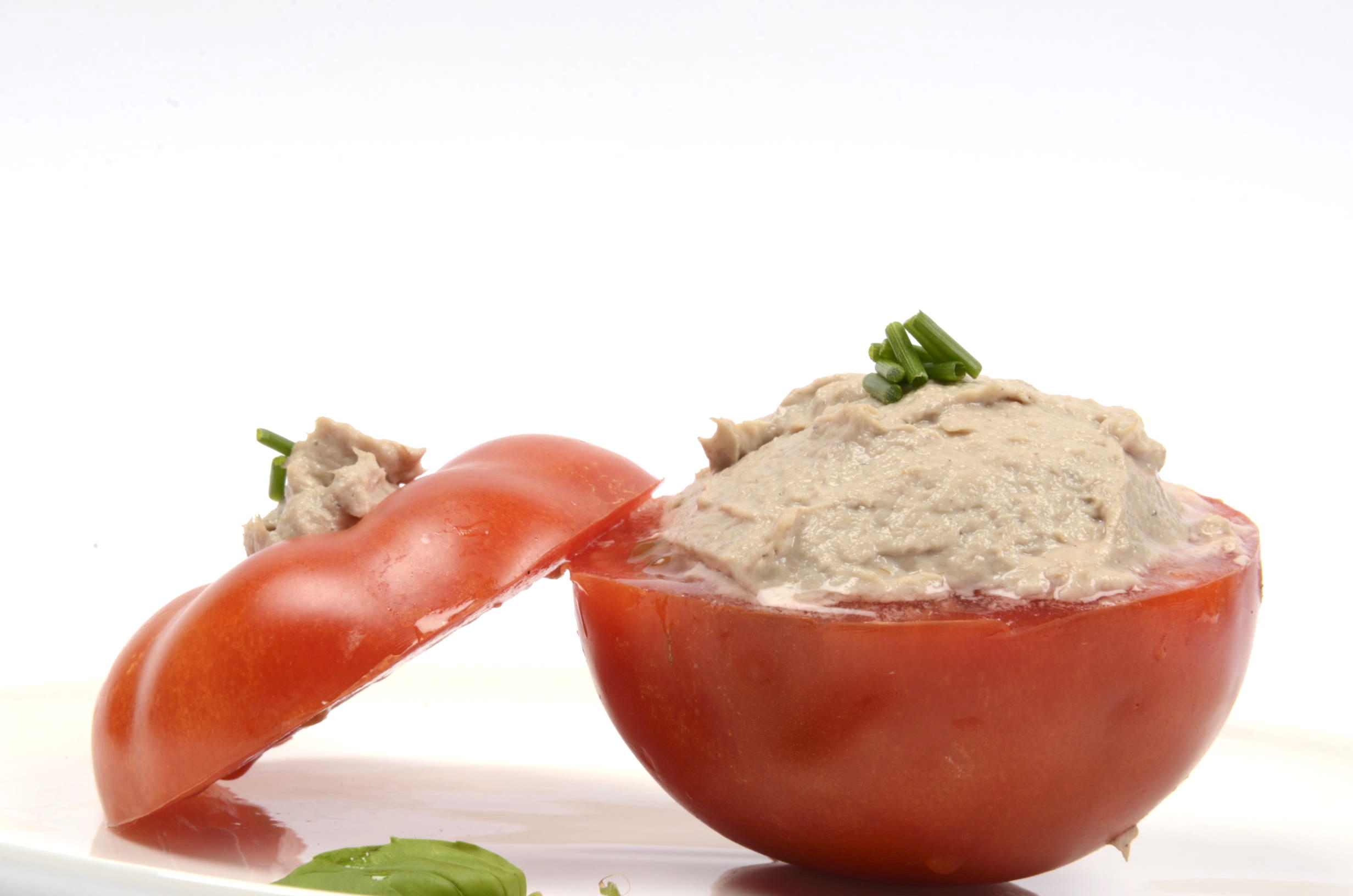 1. Cortar el tercio superior de los tomates y vaciarlos. Sazonar el interior.
