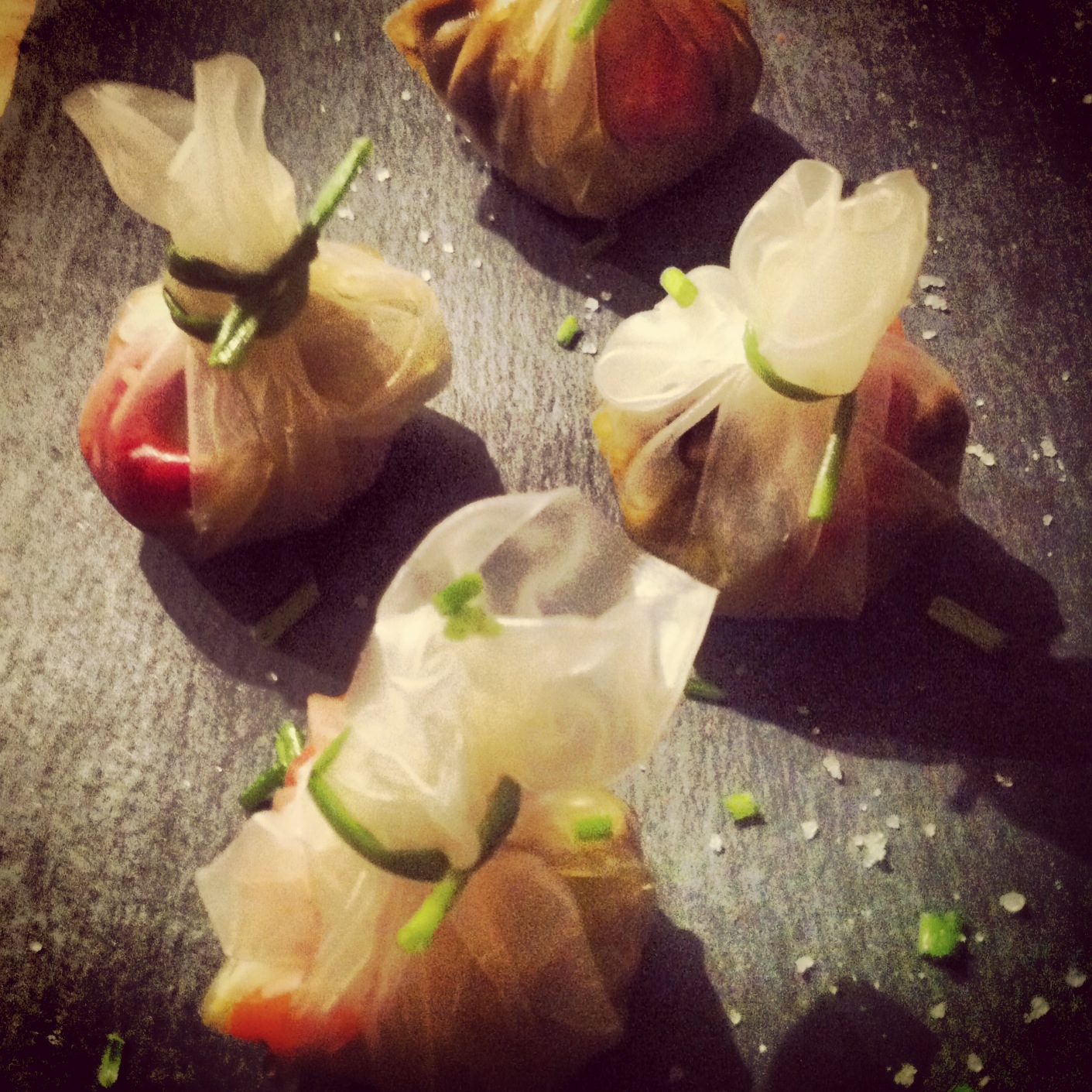 Como se hacen los sacos de alcachofa, boletus y pimiento asado: