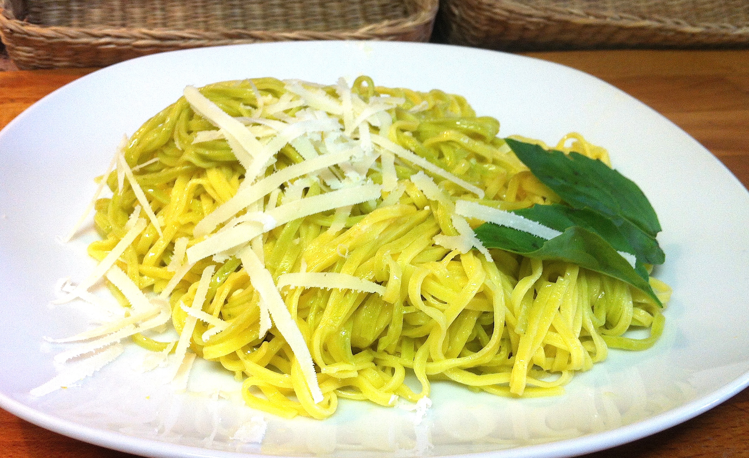 Pasta fresca al limón con albahaca fresca y queso parmesano
